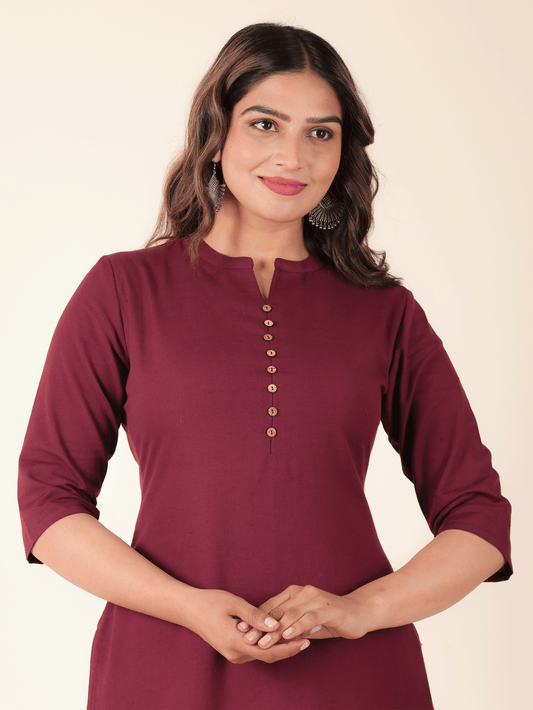 Women's Red Linen Cotton Solid Straight Kurta for Women