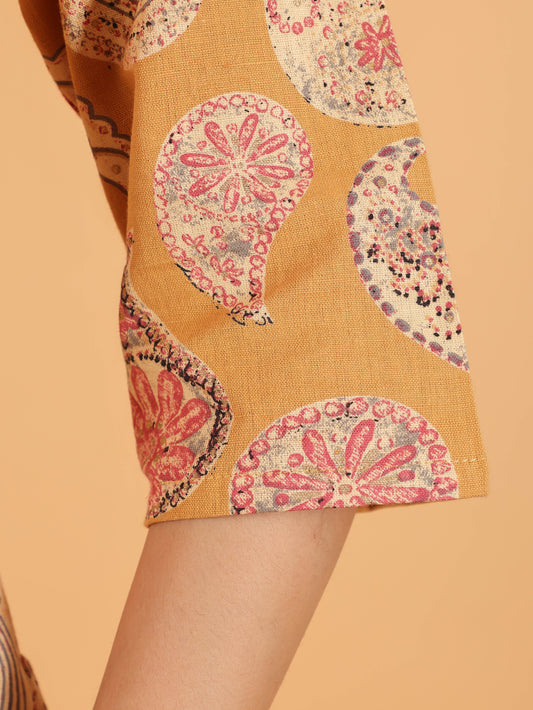 Women's Straight Kantha Cotton Woven Design Print Women's Kurta - Yellow