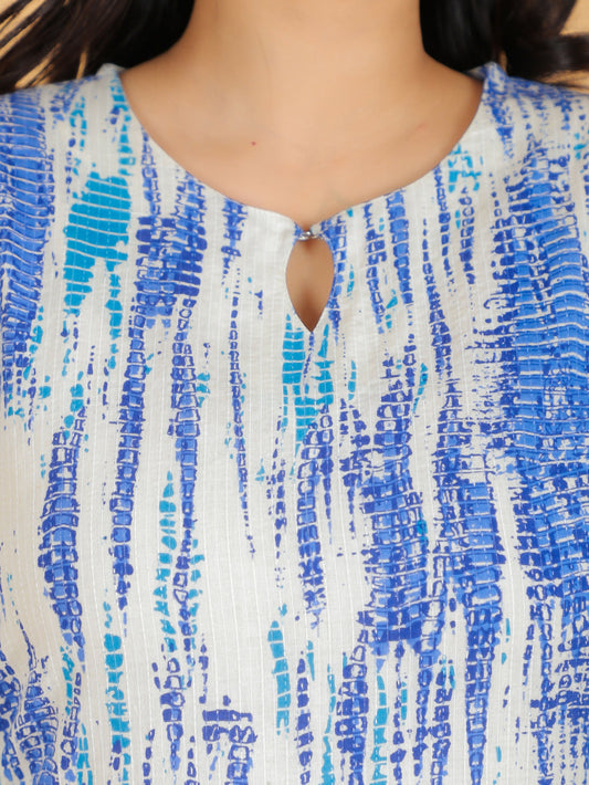 Women's Straight Kantha Cotton Tie-Dye Print Women's Kurta - Off White