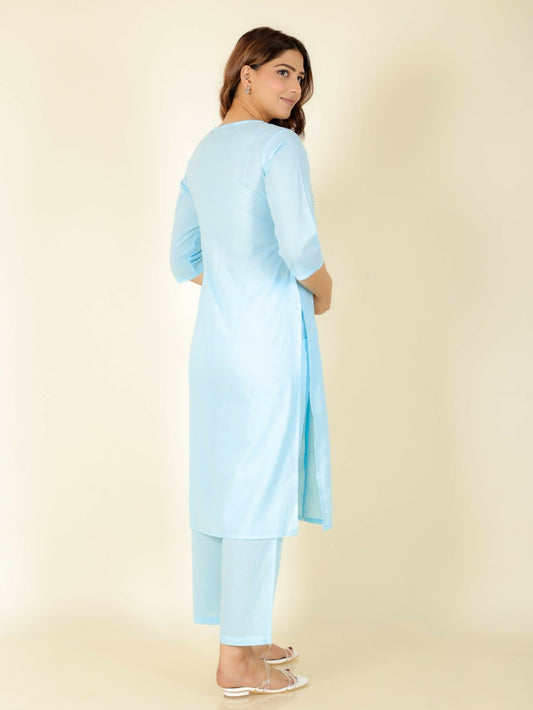 Women's Panelled Soft Cotton Solid Women's Kurta - Blue