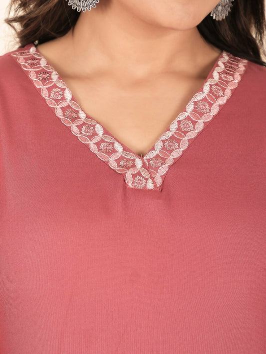 Women's Pink Rayon Solid Straight Kurta for Women