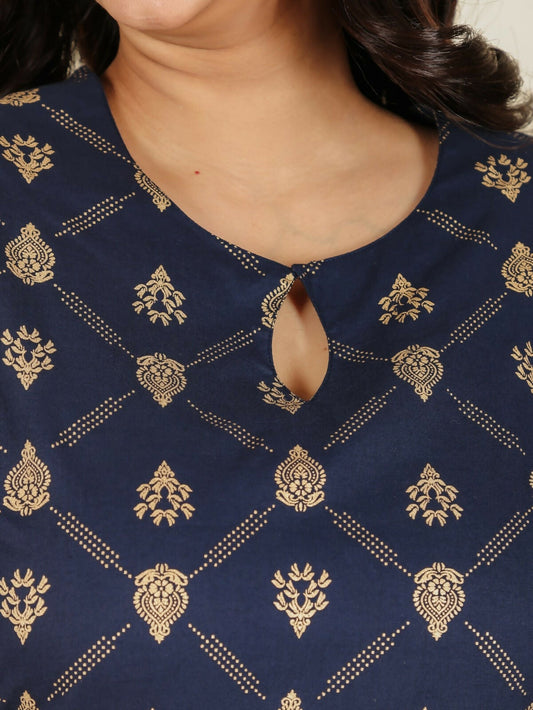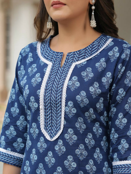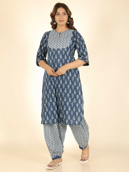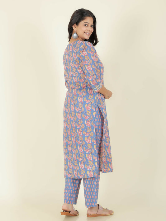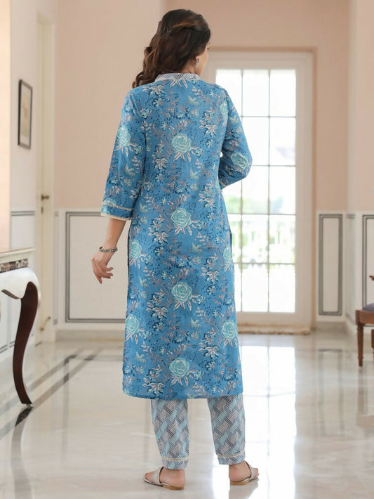 Women's Straight Soft Cotton Floral Print Women's Kurta Set - Blue