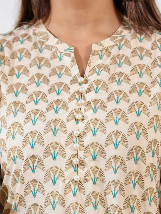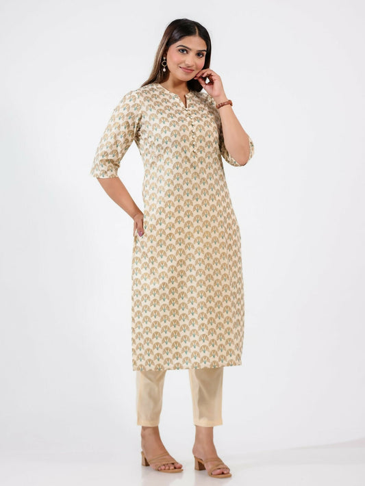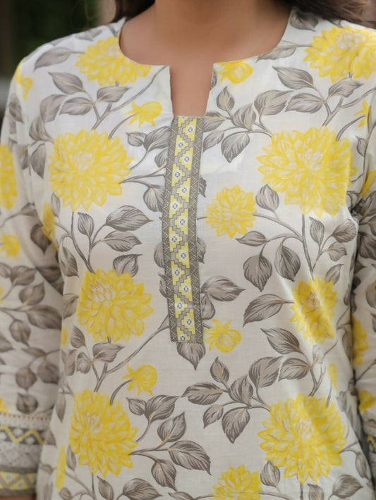 Women's Straight Soft Cotton Floral Print Women's Kurta Set - Off White