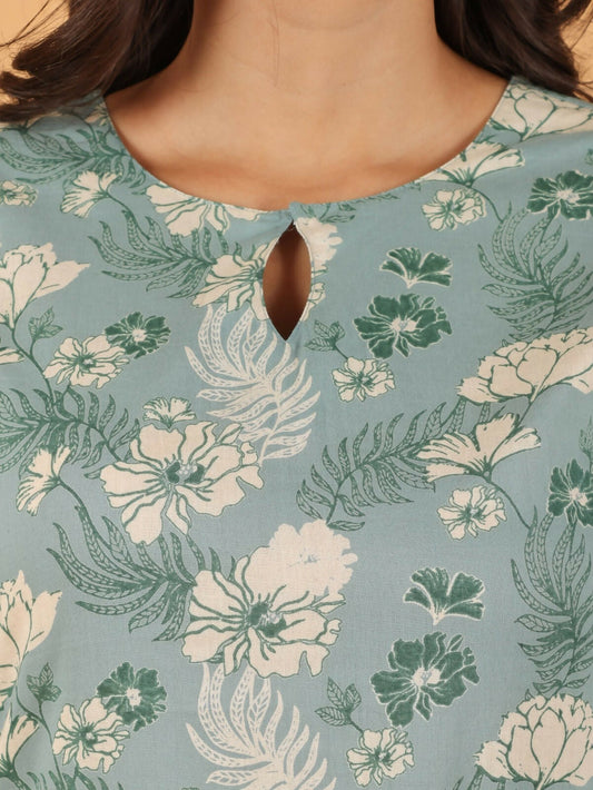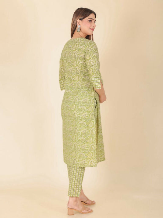Women's Straight Soft Cotton Floral Print Women's Kurta Set - Green