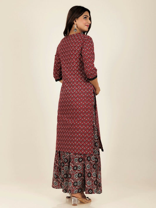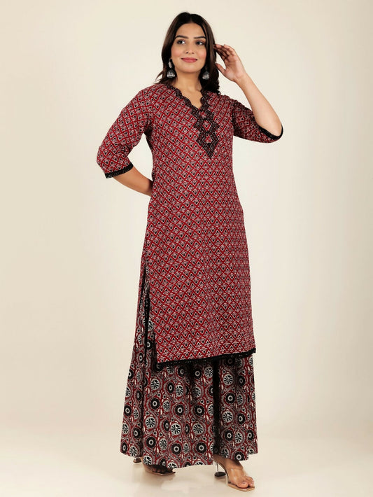 Women's Straight Soft Cotton Geometric Print Women's Kurta Set - Red