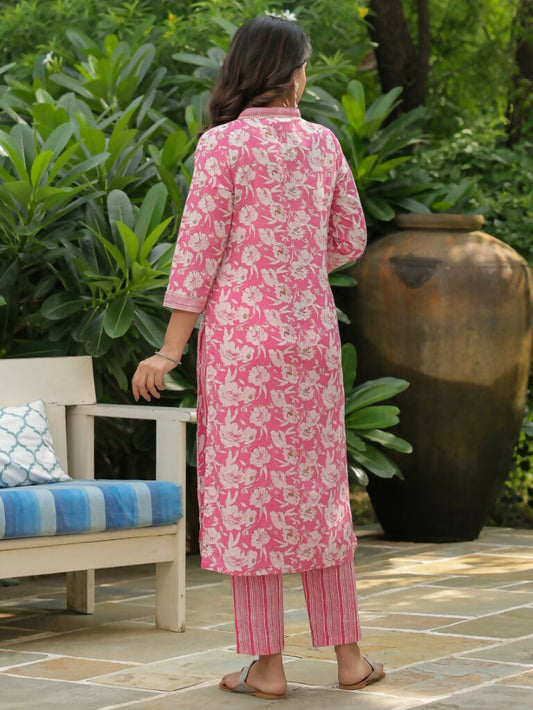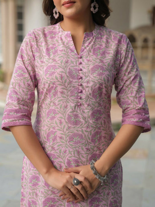 Women's Straight Soft Cotton Floral Print Women's Kurta Set - Pink