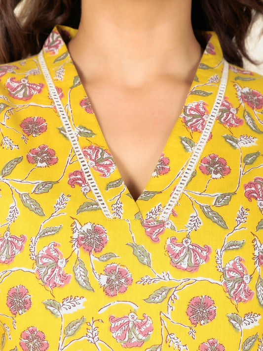 Women's Straight Soft Cotton Floral Print Women's Kurta - Yellow