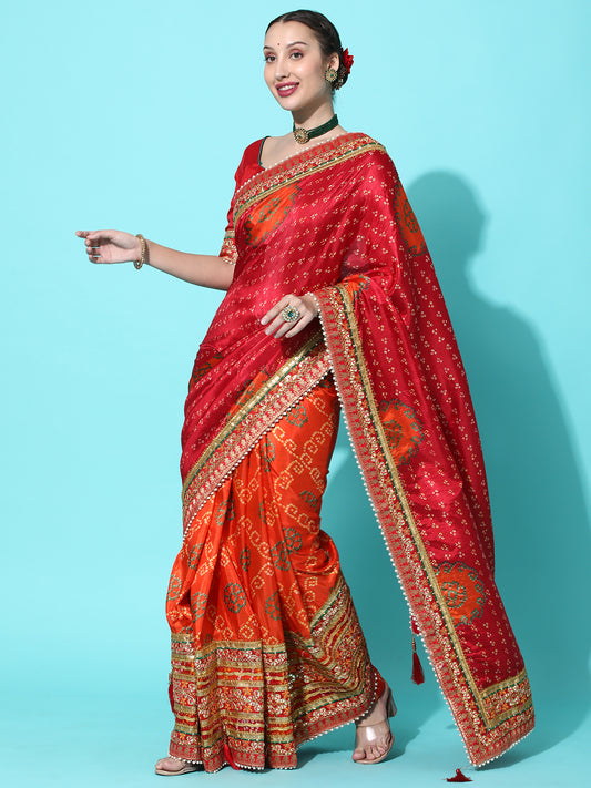 Dhiyona RV Women's Soft Dola Silk With Bhandhani With Colourful Embroidery Heavy Lace Saree With Blouse ( KVD2092 )