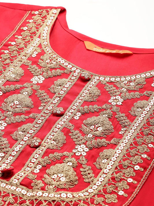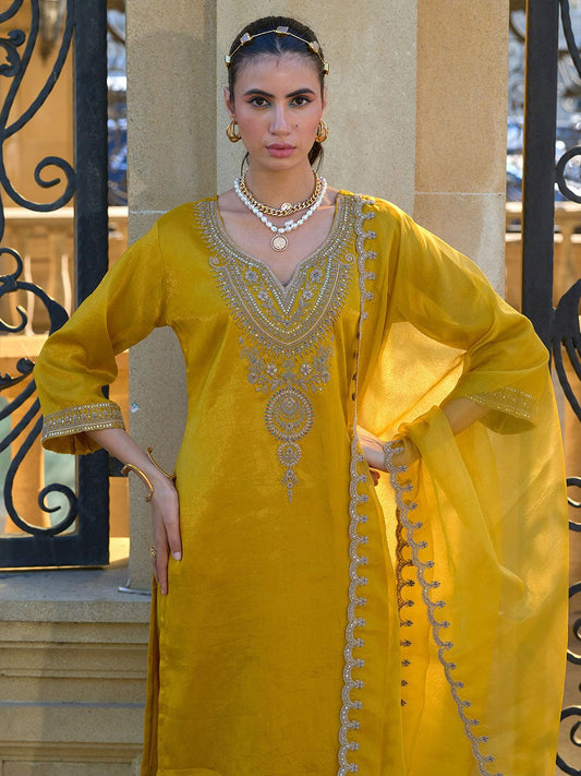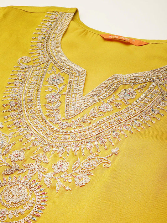 Dhiyona IE Ethnic Motifs Yoke Design Sequinned Kurta With Trousers & Dupatta