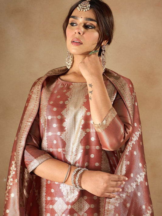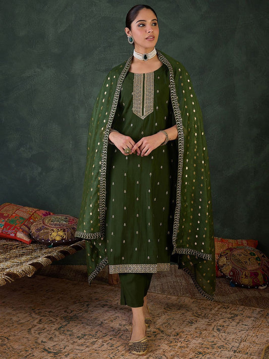 Dhiyona IE Ethnic Motifs Embroidered Regular Zari Kurta with Trousers & With Dupatta