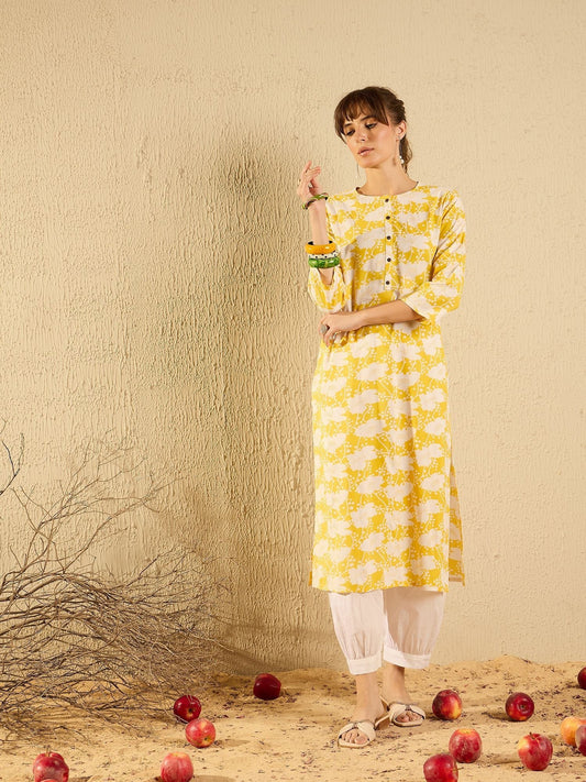 Dhiyona IE Floral Printed Round Neck Machine Weave Straight Kurta