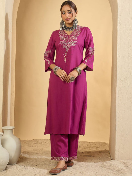 Dhiyona IE Women Embroidered Regular Thread Work Kurta with Trousers