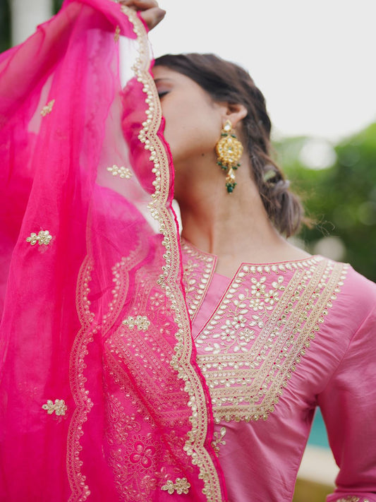 Dhiyona IE Floral Embroidered Sequinned Kurta With Trousers & Dupatta