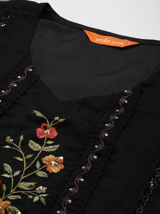 Dhiyona IE Floral Embroidered Panelled Thread Work Kurta with Trousers & With Dupatta