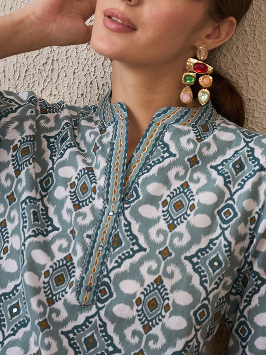 Dhiyona IE Abstract Printed Pure Cotton Straight Kurta With Trousers & Dupatta