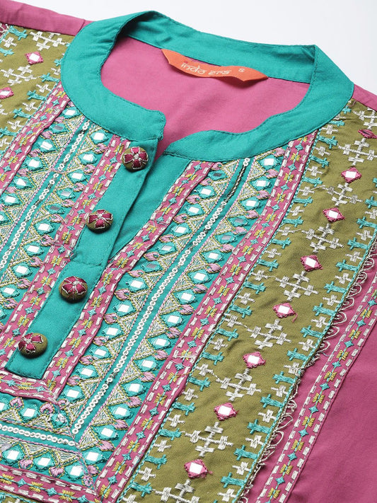 Dhiyona IE Women Geometric Embroidered Thread Work Kurta