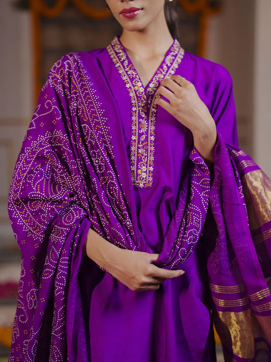 Dhiyona IE Floral Printed Beads & Stones Chanderi Silk Kurta With Trousers & Dupatta