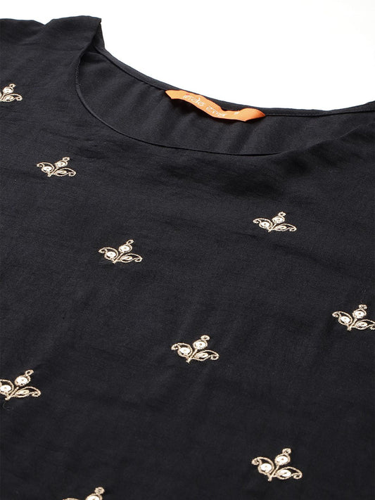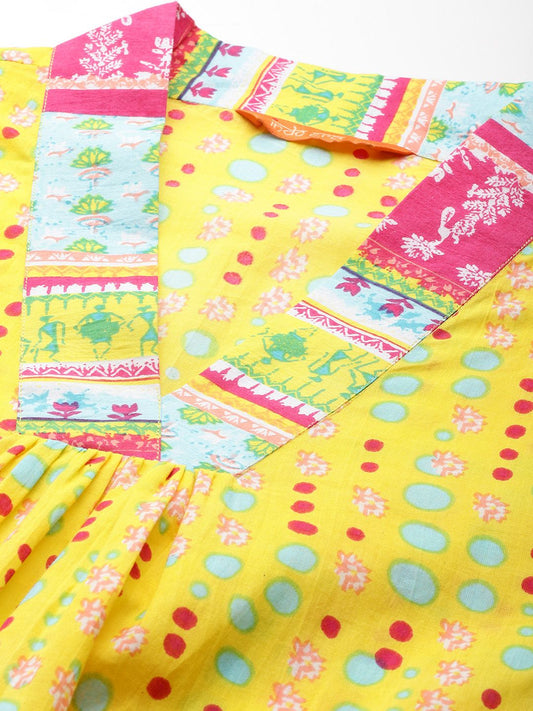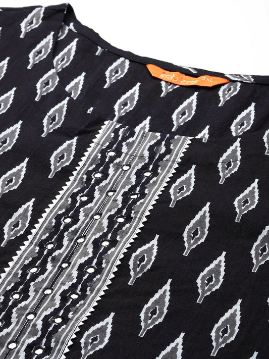 Dhiyona IE Ethnic Motifs Printed Empire Mirror Work Pure Cotton Kurta Set