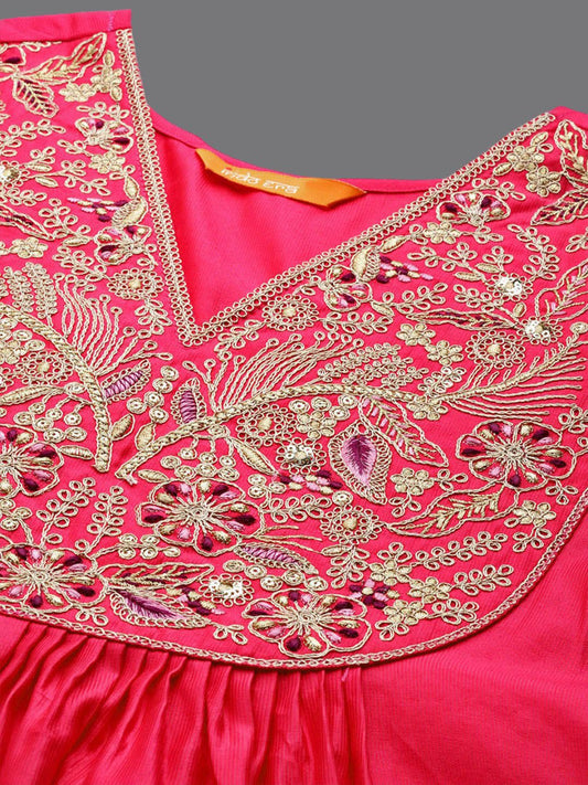 Dhiyona IE Ethnic Motifs Embroidered Empire Kurta with Trousers