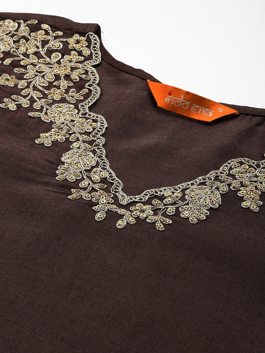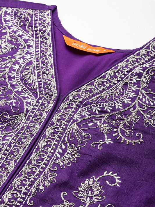 Dhiyona IE Women Ethnic Motifs Embroidered Regular Sequinned Chanderi Silk Kurta
