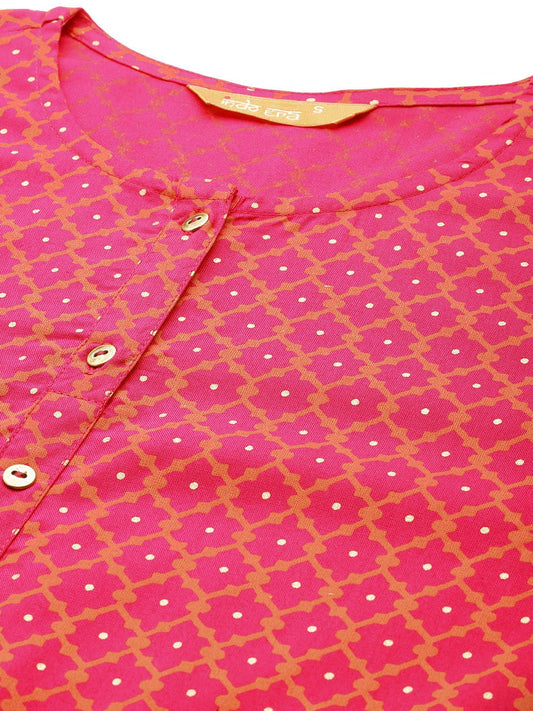 Dhiyona IE Geometric Printed Round Neck A-Line Kurta