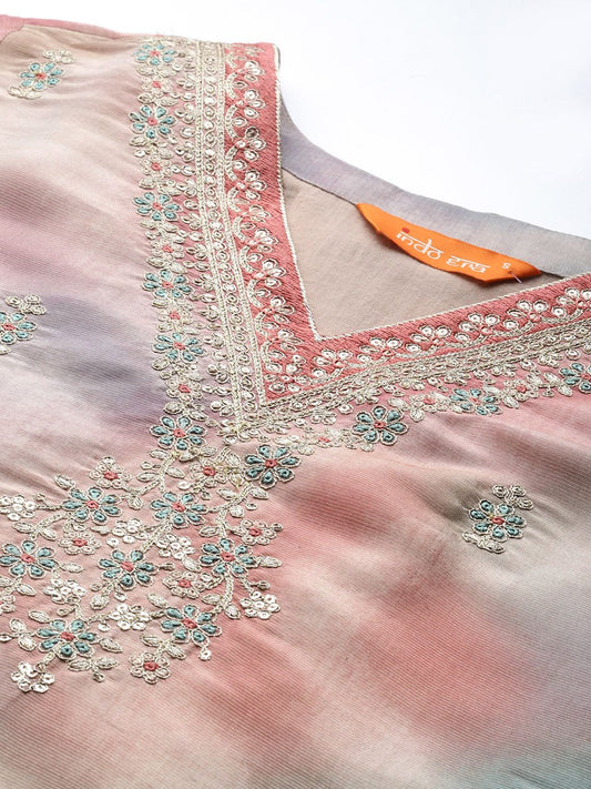 Dhiyona IE Floral Embroidered Sequinned Kurta With Trousers & Dupatta