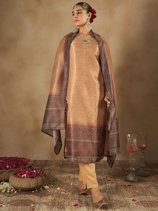 Dhiyona IE Ethnic Motifs Woven Design Zari Kurta With Trousers & Dupatta