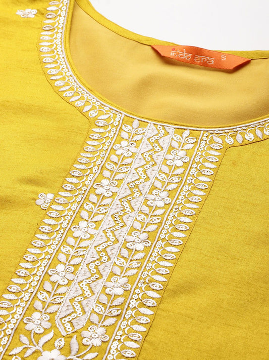 Dhiyona IE Ethnic Motifs Embroidered Thread Work Kurta With Trousers & Dupatta
