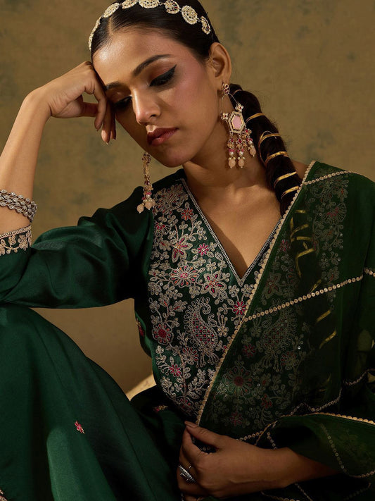 Dhiyona IE Floral Embroidered Sequinned Kurta with Trousers & With Dupatta