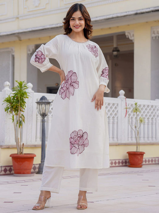 Dhiyona IE Floral Printed Pure Cotton Straight Kurta With Trouser