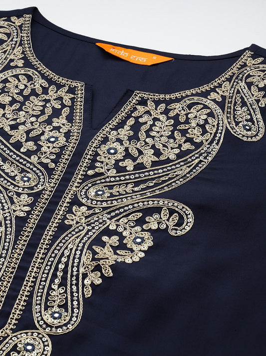 Dhiyona IE Ethnic Motifs Embroidered Zari Liva Kurta with Trousers & With Dupatta