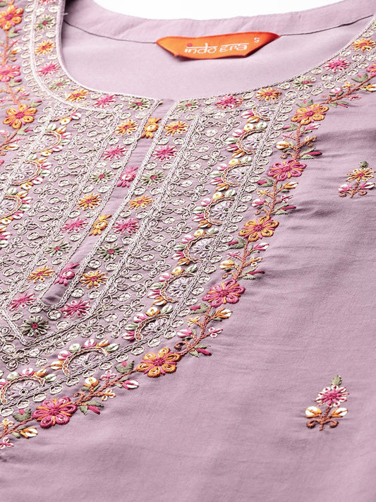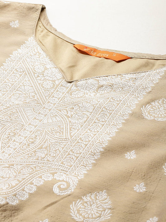 Dhiyona IE Floral Embroidered Mandarin Collar Thread Work Pure Cotton Kurta With Trouser