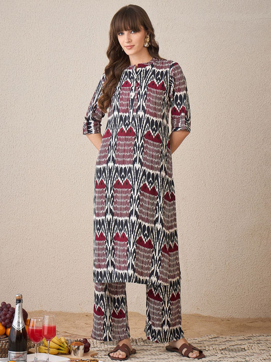 Dhiyona IE Ethnic Motifs Printed Mandarin Collar Straight Kurta With Trouser