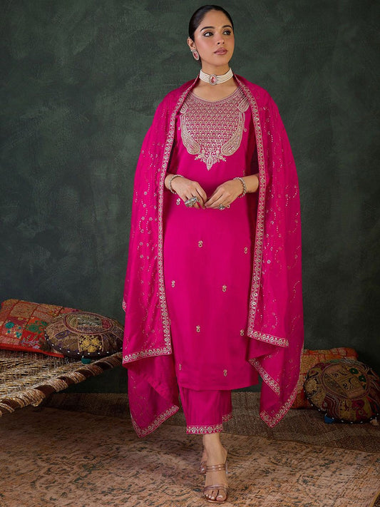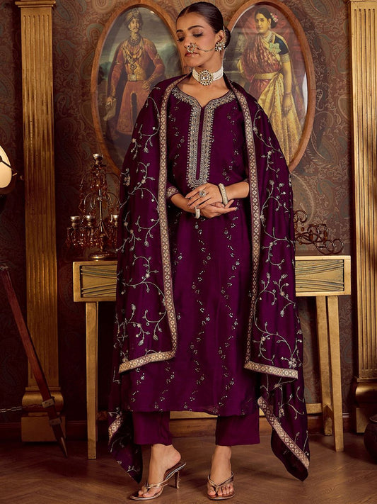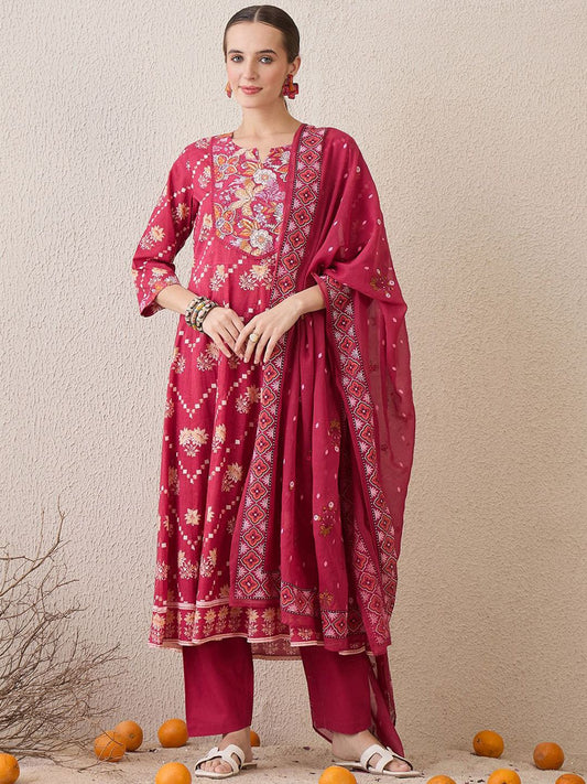 Dhiyona IE Floral Embroidered Kurta with Trousers & Dupatta