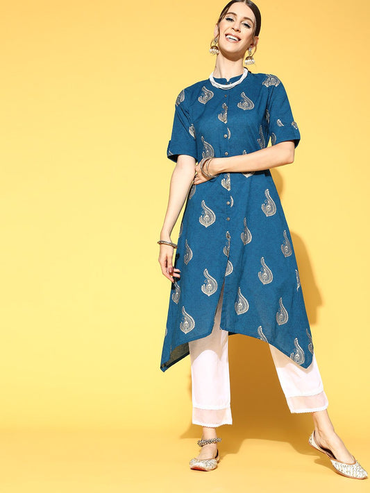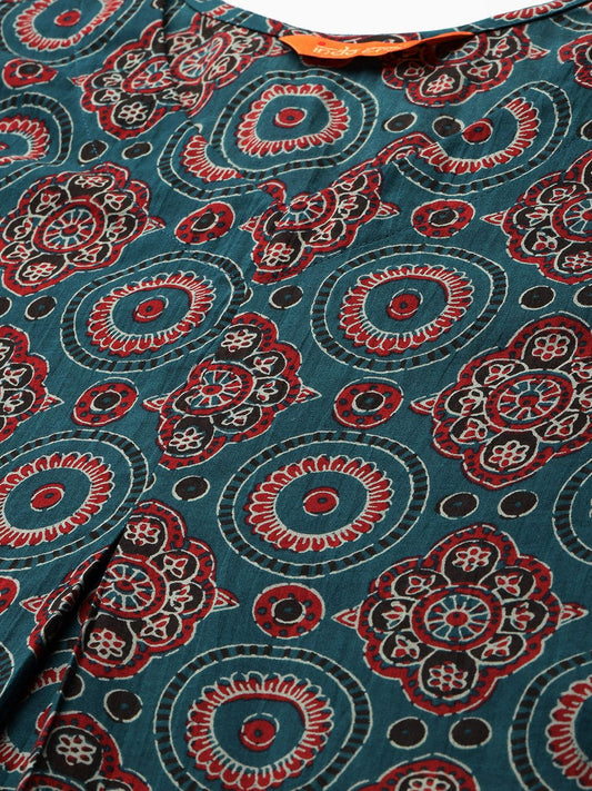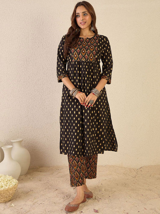 Dhiyona IE Ethnic Motifs Printed Pure Cotton Kurta with Trousers