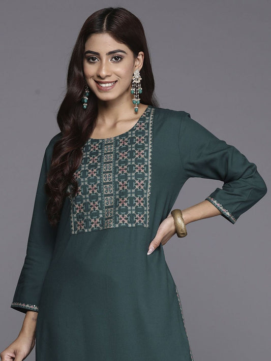 Dhiyona IE Ethnic Motifs Embroidered Round Neck Sequins Straight Kurtas