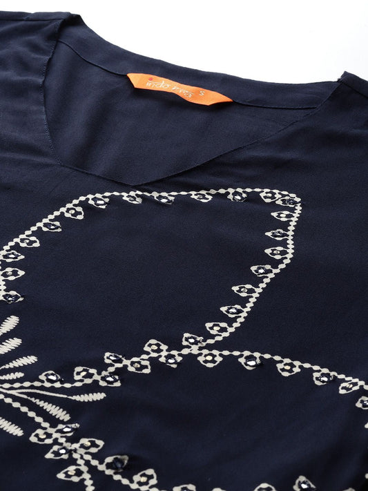 Dhiyona IE Floral Yoke Design Empire A-Line Sequinned Liva Kurta with Trousers