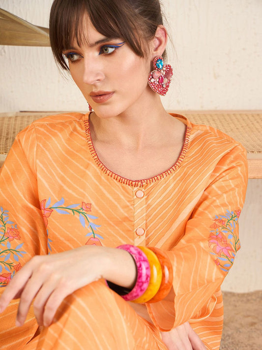 Dhiyona IE Floral Printed Pure Cotton Kurta with Trousers