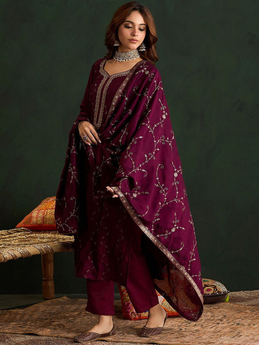 Dhiyona IE Floral Embroidered Straightf Kurta with Trousers & Dupatta