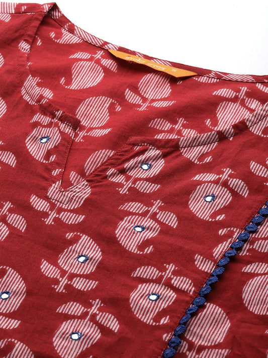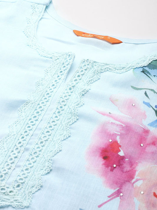 Dhiyona IE Women Floral Printed Cotton Kurta with Trousers