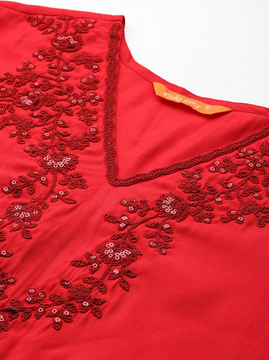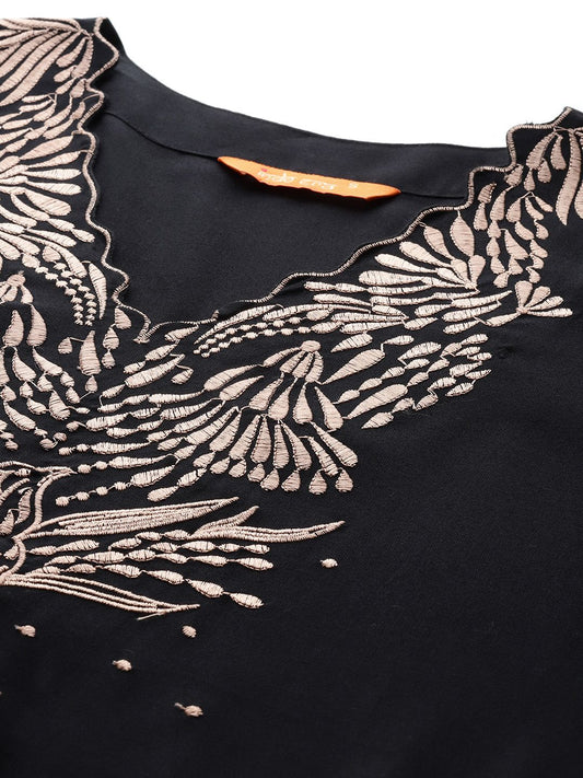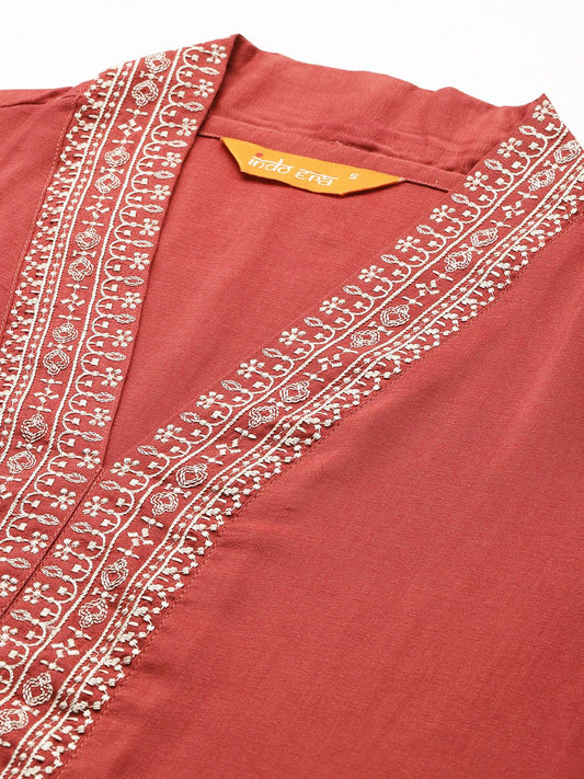 Dhiyona IE V Neck Ethnic Motifs Embroidered Regular Thread Work Kurta Set