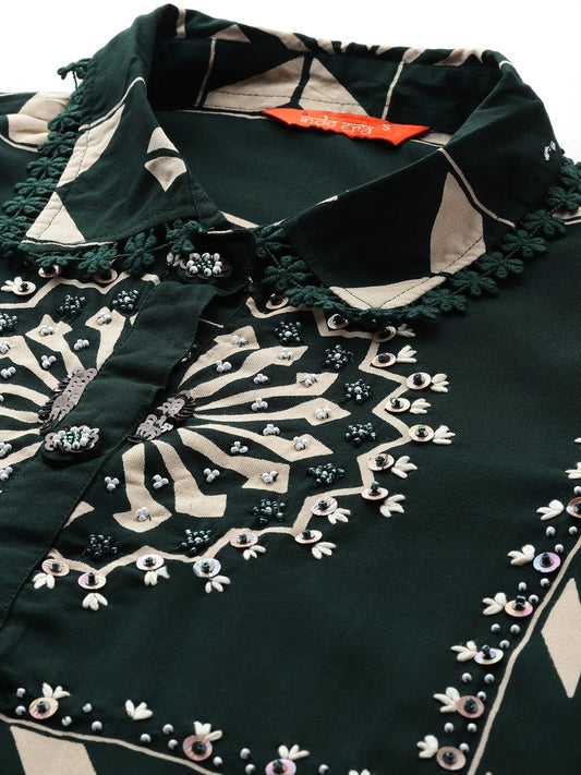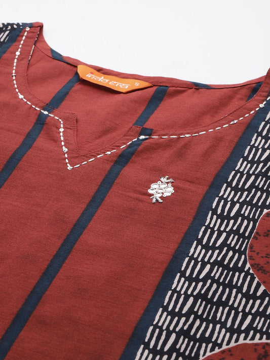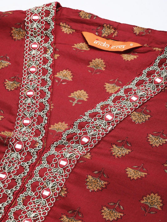 Dhiyona IE Paisley Printed Mirror Work Pure Cotton Kurta with Trousers