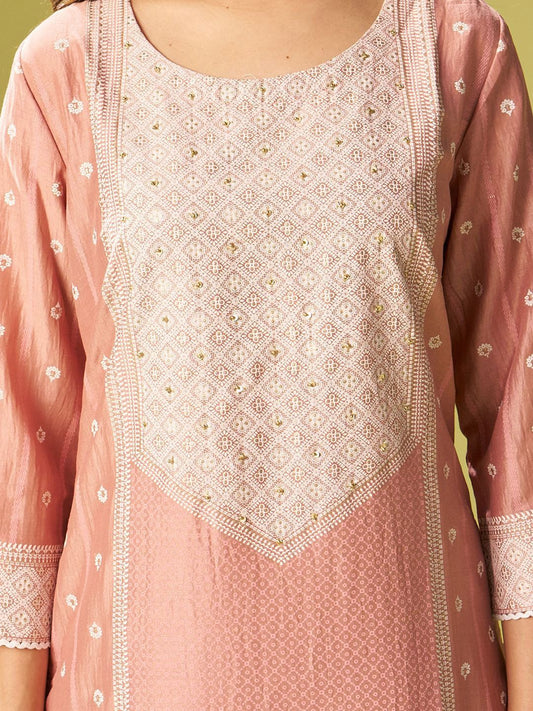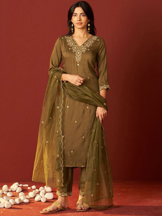 Dhiyona IE Ethnic Motifs Embroidered Sequinned Kurta with Trousers & With Dupatta