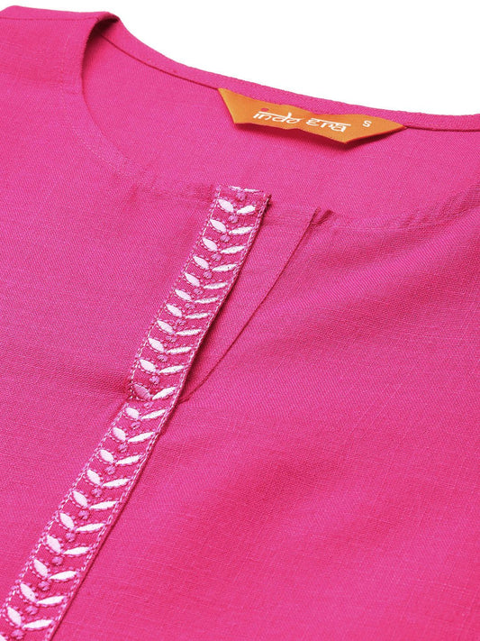 Dhiyona IE Women Floral Embroidered Regular Thread Work Pure Cotton Kurta with Trousers