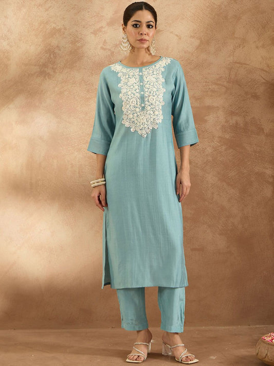 Dhiyona IE Solid Kurta with Trousers with Embroidered Detail