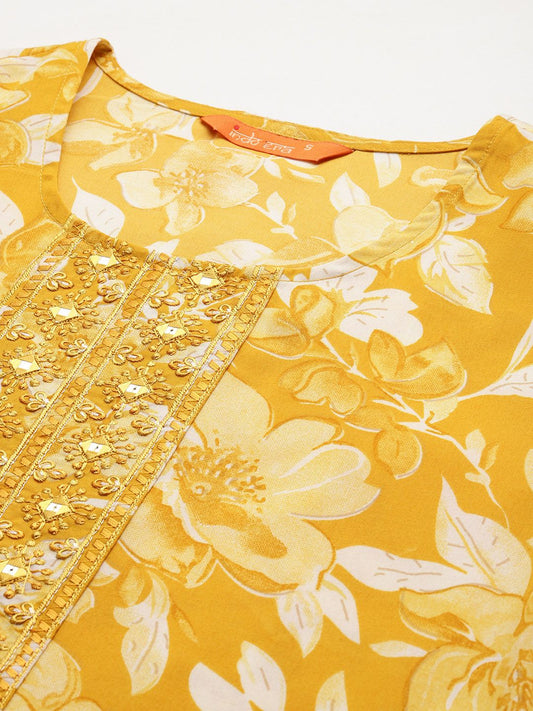 Dhiyona IE Floral Printed Sequinned Kurta with Trousers
