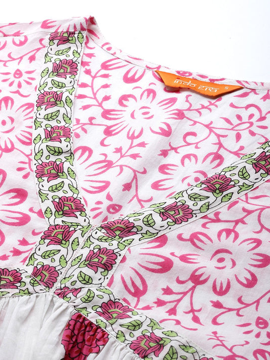 Dhiyona IE Floral Printed Pure Cotton Kurta with Trousers