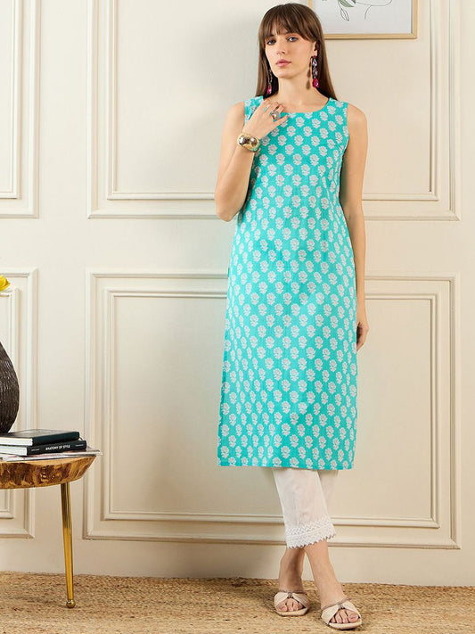 Dhiyona IE Ethnic Motifs Embroidered Round Neck Thread Work Cotton Straight Kurta