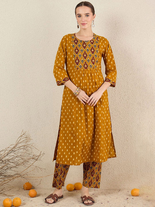 Dhiyona IE Ethnic Motifs Printed Pure Cotton Kurta with Trousers
