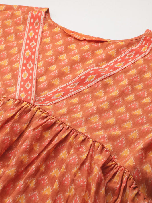 Dhiyona IE Women Geometric Printed Cotton Kurta with Trousers